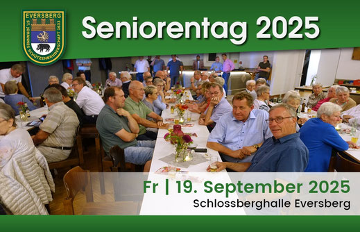 auch in diesem Jahr laden wir, die St. Johannes Schützenbruderschaft Eversberg und die Musikkapelle Eversberg, Sie wieder sehr herzlich zum 35. Eversberger Seniorentag am Freitag, 19. September 2025, ab 15 Uhr in der Schlossberghalle ein.
